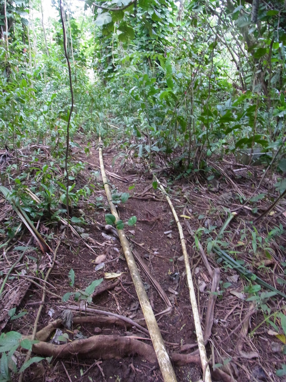 栽培用の水も、山の奥からパイプを繋ぎ、麓まで水路を作りタロイモ栽培の水田と繋がっています。(^^)